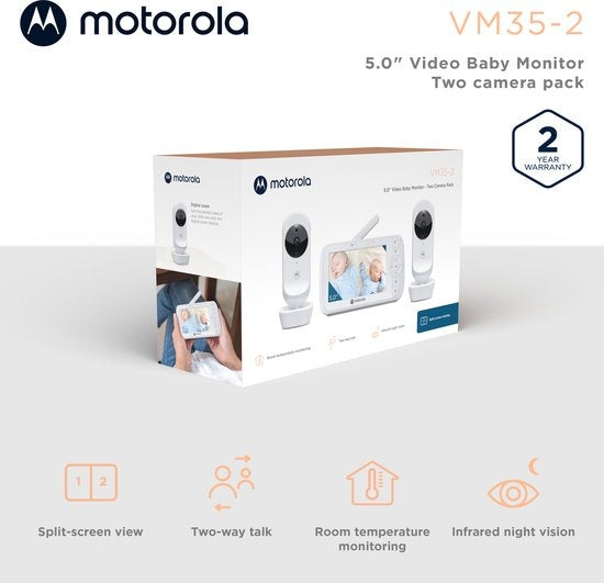 Motorola Nursery VM35-2 - Babyphone mit geteiltem 5-Zoll-Bildschirm und 2 Kameras - Nachtsicht - integriertes Mikrofon