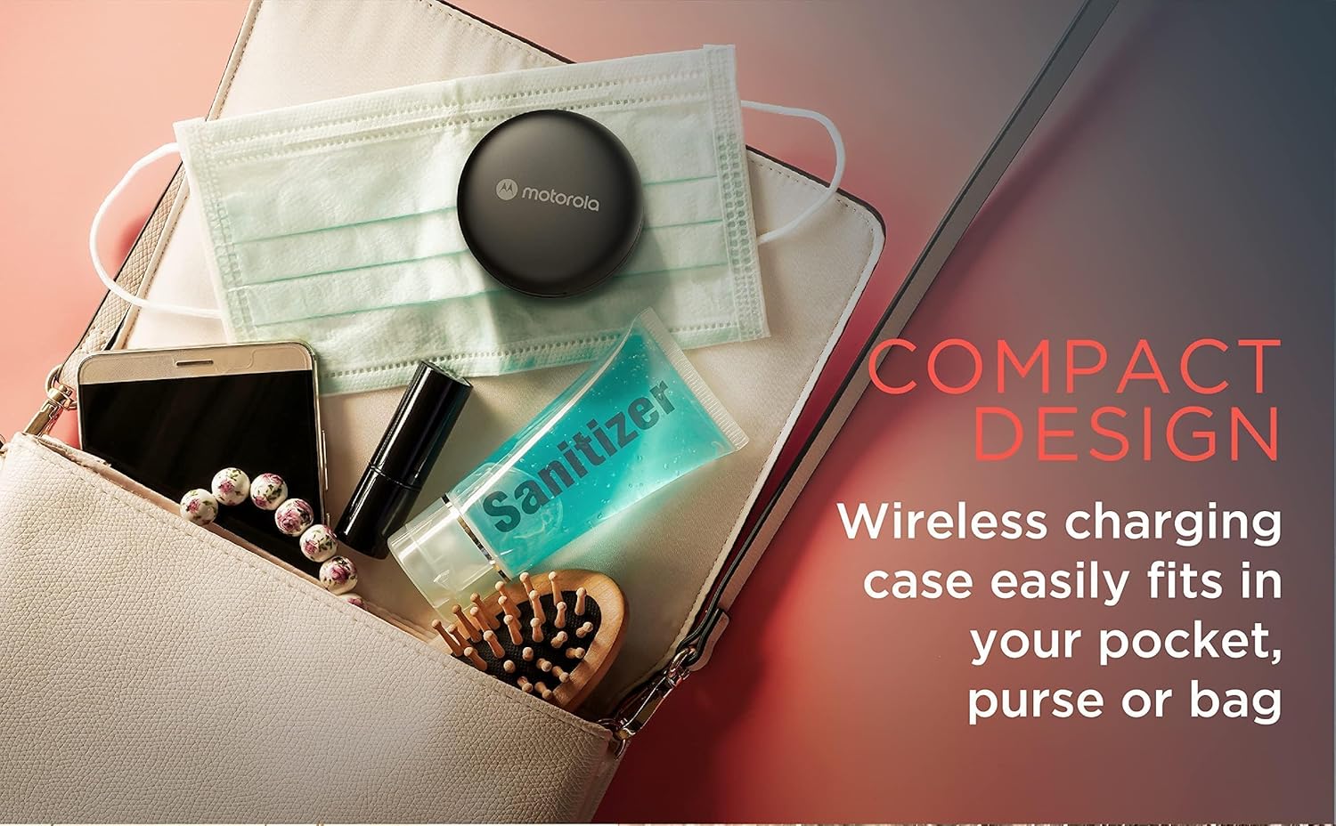 - QI-Technologie: Das Ladeetui der MOTO BUDS 250 Ohrhörer verfügt über eine spezielle Qi-Technologie. Das bedeutet, dass sie vollständig kabellos mit einem Qi-Ladepad aufgeladen werden können. Dieses ist nicht im Lieferumfang enthalten.