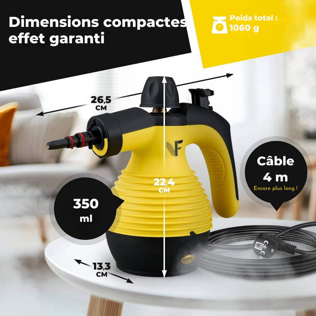 Neighbour's Friend Manueller Dampfreiniger - Mit Dampfregulierung - Inklusive Zubehör - 350ml Tank - Gelb