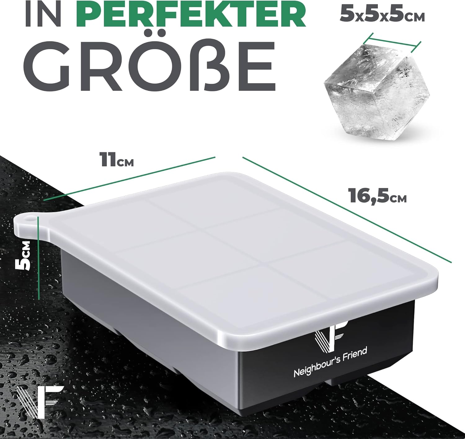 Neighbour's Friend Eiswürfelform groß 2er Pack - 12x XXL Eiswürfel für Cocktails, Whisky & Longdrinks - Platinsilikon Eiswürfelform mit Deckel spülmaschinengeeignet - Rieseneiswürfelform XL