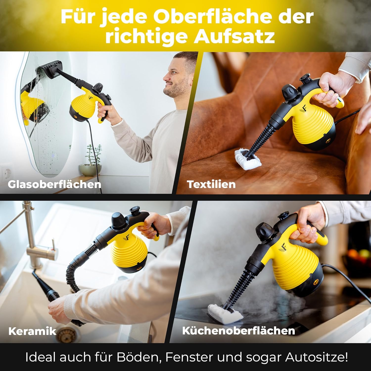 Neighbour's Friend® Dampfreiniger Neues Modell – Leistungsstarker Hand Steam Cleaner, 3,5 Bar Druck, 4m Kabel, 350ml Tank I Handdampfreiniger für Auto, Werkstatt, Haushalt & Fensterreinigung
