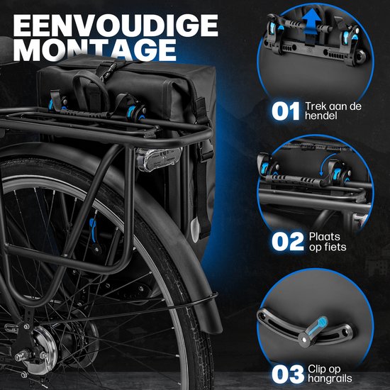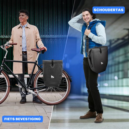 Fahrradtasche ✓ Umhängetasche ✓ Einzelfahrradtasche Schwarz ✓ Packtaschen für Elektrofahrräder ✓ Rucksack mit Laptopfach ✓ Vollkommen wasserdicht ✓ Roll Top ✓ Großzügiges Fassungsvermögen