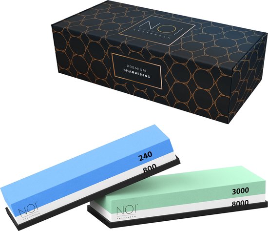 NOI Amsterdam Wetstone Messerschärfer - Körnung 240/800 & 3000/8000 - Schärfstein für Messer - Doppelseitig - Messerschärfer - Wetzstein