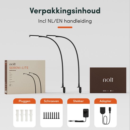 Nolt Leselampe für das Bett - Nachtlicht dimmbar - 2 Bettlampen - Bettlampe für das Schlafzimmer - Leselampen für das Kopfteil - Leselampe für Erwachsene