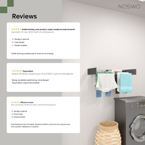 Der Noswo Wäscheständer zur Wandmontage ist eine stilvolle Art, Platz zu sparen. Hier sind die Vorteile: