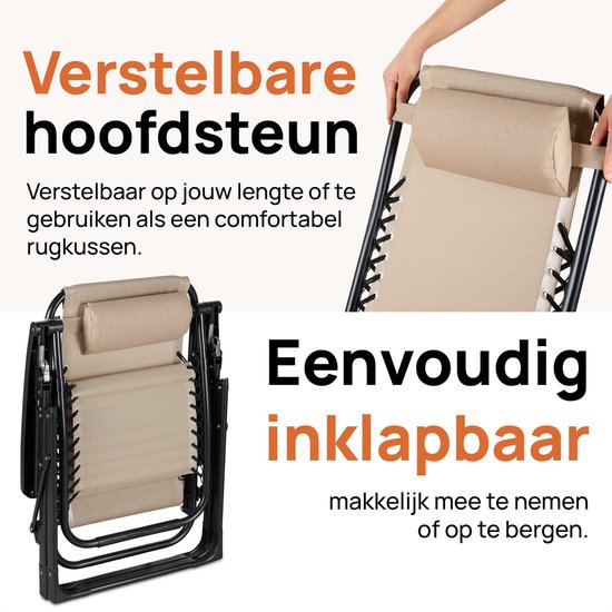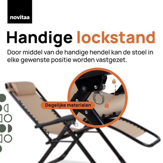 Novitaa klappbare Gartenstühle - 30°-90° verstellbar - Liege Garten - Metall - Creme