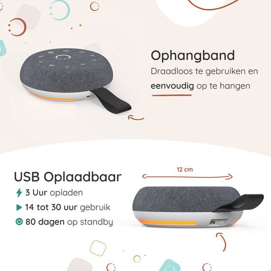 Neueste und vollständigste Numsy Einsteigermodell!* Ist der Schlaf Ihres Babys jedes Mal ein Drama? Fehlen Ihnen die Worte? Versuchen Sie es mit weißem Rauschen! Es ist wissenschaftlich erwiesen, dass weißes Rauschen wirksam ist! Es ist ein beruhigendes Geräusch, das eine sehr beruhigende Wirkung auf Babys hat und ihnen hilft, gut zu schlafen! Möchten Sie es ausprobieren? Unser Numsy Move ist hét das neueste Modell, das es in sich hat! Helfen Sie Ihrem Baby auf natürliche, aber wirksame Weise, schön zu träumen. Ihre Vorteile: ✓ Wissenschaftlich erwiesene Wirksamkeit. ✓ Neu: Auswahl von 40 Klängen, darunter weißes Rauschen, Gebärmutter- und Herzschlaggeräusche. ✓ Kabellos zu verwenden und daher sehr praktisch für unterwegs! ✓ Neu: Inklusive beruhigendem rot-orangem Atemlicht und 6 weiteren Farben ✓ Wird mit praktischer Aufhängekordel geliefert. ✓ Timer mit 30/60/90/120-Minuten- oder Dauerwiedergabe (neu: 14 Stunden Dauerwiedergabe). ✓ Auch für ältere Kinder und Erwachsene mit Schlafproblemen geeignet! Ihr Stück zu Hause überall Einmal weißes Rauschen, weißes Rauschen ist überall. Sie werden erstaunt sein, wie sehr Ihr Baby den Klang lieben wird. Daran hat Numsy bei der Entwicklung des Numsy Move gedacht: die verbesserte Version. Es verfügt über ein elegantes und kompaktes Design, so dass es leicht zu verstauen und zu tragen ist. Außerdem ist es mit einer starken Batterie ausgestattet und kann daher kabellos verwendet werden. Praktisch bei einer langen Autofahrt oder einem Nickerchen im Kinderwagen! 40 natürliche Geräusche Weißes Rauschen hat sich als wirksam erwiesen, aber es gibt auch andere Geräusche, die sehr gut zum entspannten Einschlafen geeignet sind. Welches Geräusch für Sie oder Ihr Baby am besten funktioniert, ist ganz persönlich. Um Ihnen noch mehr Auswahlmöglichkeiten zu bieten, enthält der Numsy Move jetzt noch mehr beruhigende Klänge, die im Hintergrund abgespielt werden können: weißes Rauschen, Meeresrauschen, Ventilator, Herzschlaggeräusche und mehr! Singen Sie mit dem Atemlicht Die Reise ins Traumland wird noch schöner, wenn Ihr Kind von einem wunderbar entspannenden Atemlicht begleitet wird. Das Licht des Numsy Move ist jetzt rot-bernsteinfarben, was besser und beruhigender wirkt. Es hat aber auch 6 andere Farben, so dass es auch als Nachtlicht verwendet werden kann. Verabschieden Sie sich von schlaflosen Nächten Gute Ernährung ist wichtig, aber guter Schlaf ist genauso wichtig! Leider ist der Schlaf bei Babys (und oft auch bei Erwachsenen) ein großes Problem. Es kommt häufig vor, dass Babys aus verschiedenen Gründen nicht gut schlafen. Neben Ruhe, Regelmäßigkeit und Sauberkeit kann eine zusätzliche Hilfe manchmal sehr angenehm sein. Numsy bietet Ihnen ein natürliches Hilfsmittel, um die Nachtruhe Ihres Babys und letztendlich auch Ihre zu optimieren. Das wollen Sie doch auch, oder? Mehr Informationen über weißes Rauschen und die verschiedenen Modelle von Numsy finden Sie unten. Häufig gestellte Fragen Ist weißes Rauschen wirksam? Wenn Sie daran zweifeln, ob weißes Rauschen wirklich funktioniert, können wir Ihnen nur eine gute Antwort geben: JA! Es ist wissenschaftlich erwiesen, dass weißes Rauschen zu einem besseren Einschlafen beiträgt. Das liegt daran, dass das Geräusch beruhigend wirkt, so dass sich das Gehirn und der Körper gut entspannen können. Und während das Gehirn die beruhigenden und positiven Geräusche aufnimmt, haben es andere Umgebungsgeräusche schwerer, einzudringen. So kann Ihr Kind schön weiter träumen, auch wenn Sie aus Versehen viel Lärm machen. Funktioniert weißes Rauschen auch bei älteren Kindern und/oder Erwachsenen? Ja, das tut es! Auch ältere Kinder und Erwachsene können leichter ins Traumland gelangen, wenn sie von den beruhigenden Geräuschen des weißen Rauschens eingelullt werden. Neben weißem Rauschen enthalten die Geräte von Numsy auch andere beruhigende Geräusche wie Regen, Wasserfall, Meer, Vögel, Grillen und vieles mehr. So finden Sie immer einen Klang, der Ihnen hilft, entspannt einzuschlafen und Umgebungsgeräusche wie einen schnarchenden Partner zu vergessen. Wie lange funktioniert der Numsy Move kabellos? Das Numsy Move ist kabellos, sodass Sie es überall einsetzen können, wenn Ihr Kind Probleme beim Einschlafen hat. Dank seines leistungsstarken Akkus kann das Numsy Move bis zu 14 Stunden lang kabellos spielen (mit einer automatischen Abschaltfunktion nach 14 Stunden zur Sicherheit)! Praktisch für unterwegs! Ist das rote/blaue Atemlicht gefährlich? Blaues Licht war im Vorgänger vorhanden, aber nein, es ist nicht dasselbe wie “blaues Licht”, das Melatonin hemmt. Das blaue Licht ist absolut nicht gefährlich. Alle Eigenschaften der Numsy’s white noise Geräte, wie das Licht oder die Töne, werden sorgfältig ausgewählt und zusammengestellt. Dabei werden Strahlung und andere gefährliche Einflüsse stets vermieden. Das rot-amberfarbene Licht des Original 2.0 ist sehr beruhigend und entspannend für Ihr Kind. Sie wollen es nicht? Dann können Sie das Licht einfach ausschalten. Welche Geräusche hat der Numsy Move? Der Move ist jetzt mit den effektivsten 20 natürlichen Klängen ausgestattet, wie z. B.: mehrere weiße Geräusche, Herzschlag, Meer und mehr! Möchten Sie noch mehr Auswahl? Dann schauen Sie sich die Numsy Rest, Calm, Lumi, Dreamland oder Paradise an. Verfügt der Numsy Move über einen Timer? Ja! Sie können den Move kontinuierlich spielen lassen (14 Stunden) oder 30, 60, 90 oder 120 Minuten. Gibt es auch andere Lichtfarben? Ja! Enthält der Numsy Move auch Uterusgeräusche? Das Numsy Move enthält neben weißem Rauschen auch Gebärmutter- und Herzschlaggeräusche! Was bekomme ich mit dem Numsy Move? Neben einem wunderschön gestalteten Gerät für weißes Rauschen erhalten Sie auch ein USB-Kabel, eine verständliche Anleitung auf Niederländisch, ein kleines Geschenk und ein E-Book mit Tipps und Informationen über weißes Rausc