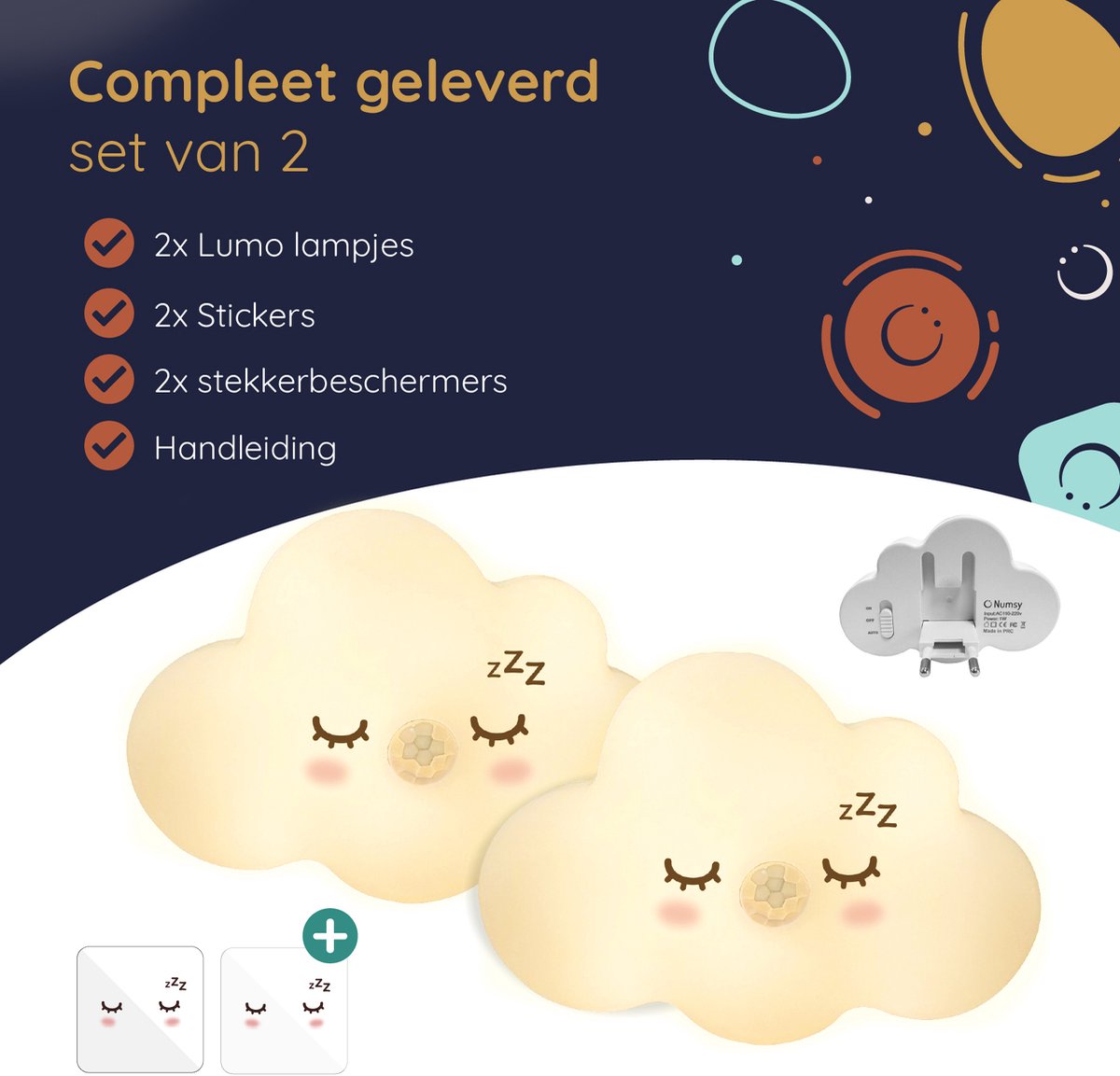 2× Numsy Lumo Nachtlicht (Plug-in Modell)