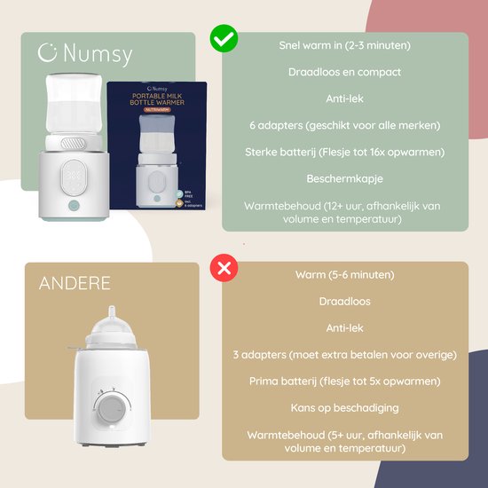 Numsy Tragbarer Flaschenwärmer für unterwegs - kabellos - inkl. 6 Adapter - 4 Temperaturstufen