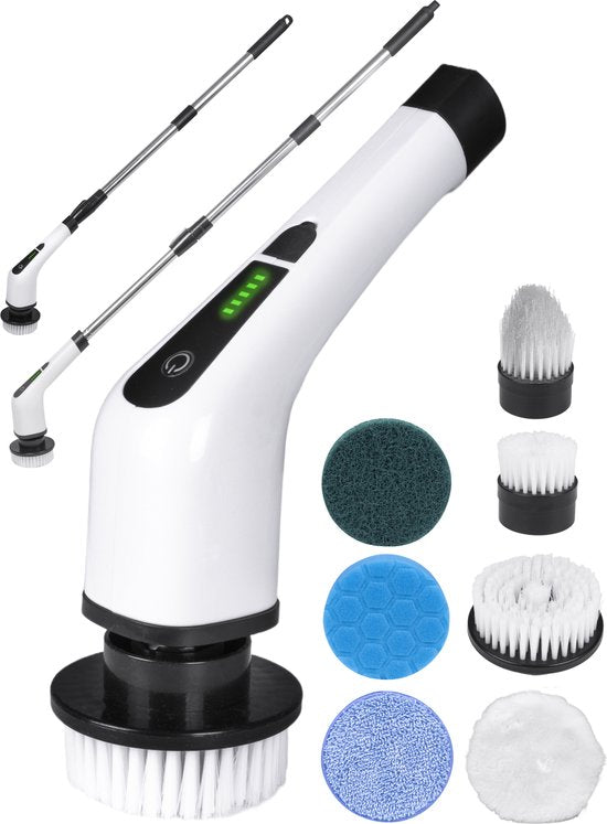 Nuvance - Elektrische Reinigungsbürste - Inkl. 7 Aufsätze - Elektrische Reinigungsbürste - Schrubber mit Stiel - Handbürste