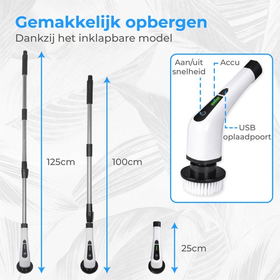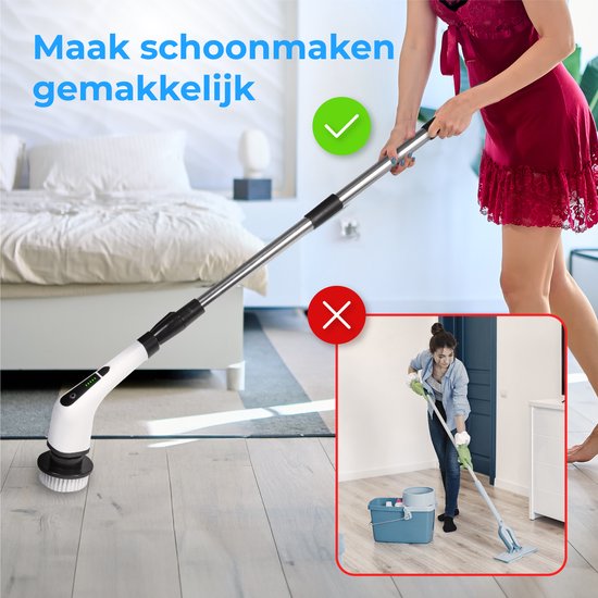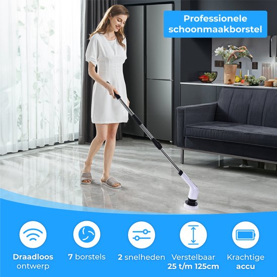 Treffen Sie die Zukunft der Reinigung: die Nuvance Elektrobürste! Leistungsstark, vielseitig und mühelos - dieses fortschrittliche Reinigungsgerät bringt Ihre Hausarbeit auf die nächste Stufe. Erleben Sie eine Revolution in der Reinigung und genießen Sie ein strahlendes Zuhause mit der Nuvance Schrubbbürste mit Griff. Vorteile unserer elektrischen Reinigungsbürste: Leistungsstarke und vielseitige Reinigung; Komfortables und ergonomisches Design; 7 verschiedene Bürstenköpfe im Lieferumfang enthalten; Wiederaufladbar über Kabel; Zeitsparend und effizient; Für eine lange Nutzungsdauer. Bequemes und ergonomisches Design Das bequeme und ergonomische Design der Nuvance-Reinigungsbürste mit Griff wurde mit Blick auf Ihre Bequemlichkeit entwickelt. Dank des ausziehbaren Griffs können Sie auch schwer zugängliche Stellen erreichen, ohne sich bücken oder strecken zu müssen. Die komfortable Handbürste liegt gut in der Hand und verringert die Ermüdung während der Reinigung, so dass die Reinigung zu einem mühelosen Erlebnis wird. Elektrische Reinigungsbürste mit 7 Aufsätzen Mit der Nuvance Schrubbbürste mit Griff erhalten Sie nicht één, sondern sieben verschiedene Bürstenköpfe. Jeder dieser Bürstenköpfe ist für spezifische Reinigungsanforderungen konzipiert, egal ob Sie Fliesen, Fugen, Böden, Badewannen oder Möbel reinigen. Dieses vielseitige Sortiment macht diese Reinigungsbürste zu einer All-inéén-Lösung, mit der Sie eine Vielzahl von Oberflächen effizientënd effektiv reinigen können, ohne dass Sie sich dabei anstrengen müssen. Inhalt Ihrer Bestellung: 1x Elektrische Reinigungsbürste; 7x Verschiedene Aufsätze; 1x USB-C Ladekabel; 1x Niederländische und Englische Anleitung.