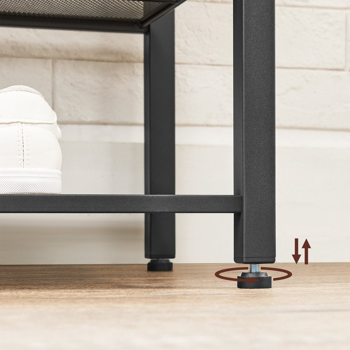 STABIL UND SICHER: Dank der vier verstellbaren Beine steht die Garderobe auch auf Teppichböden oder unebenen Flächen perfekt; 2 Anti-Sturz-Gurte sind im Lieferumfang enthalten und sorgen für einen sicheren Gebrauch. Robuste Metallrohre mit matter Oberfläche und MDF im Vintage-Stil machen die Schuhbank stark und stabil, sie kann problemlos eine erwachsene Person tragen; die Holzbank kann bis zu 100 kg tragen. (TIPP: Befestigen Sie die Standgarderobe mit dem mitgelieferten Kippsicherungsset an der Wand).