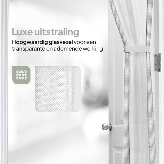 Dieser Türvorhang ist aus hochwertigem Fiberglas gefertigt, das zu einem luxuriösen Aussehen ohne sichtbare Nähte beiträgt. Fiberglas ist nicht nur leicht und stark, sondern auch feuer- und UV-beständig. Aufgrund seiner dichten Struktur ist das Material luftdurchlässig, hält aber unerwünschte Insekten fern. Praktisch, nicht wahr?