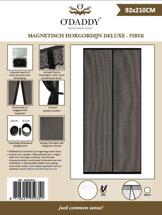 O'DADDY Türvorhang Deluxe FIBER - Magnetischer Fliegenvorhang - Für Neubauten und Standardtüren - Einfache Installation - Weißes Horn - 92x210 cm