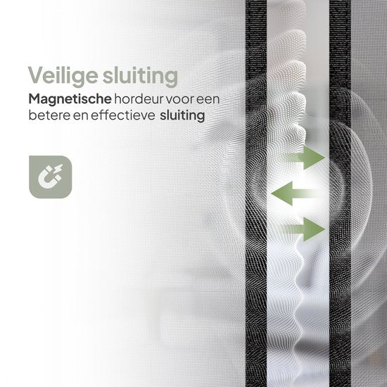 - Automatischer Verschluss durch 28 starke Magnete, die strategisch auf beiden Seiten des Vorhangs platziert sind.