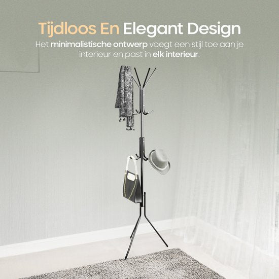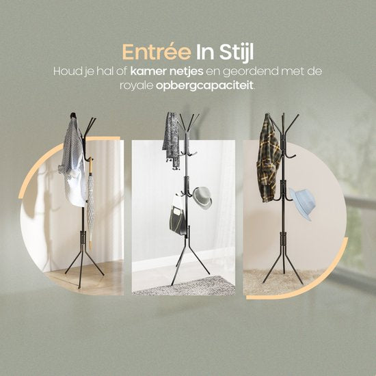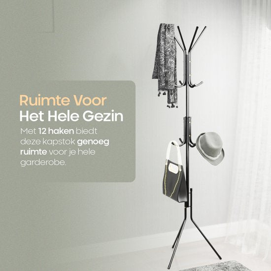 O'DADDY® Garderobenständer Upright - Aufbewahrungsständer - 12 Haken - Freistehender Garderobenständer - Upright Coat Rack - Garderobenständer - Metall - Schwarz