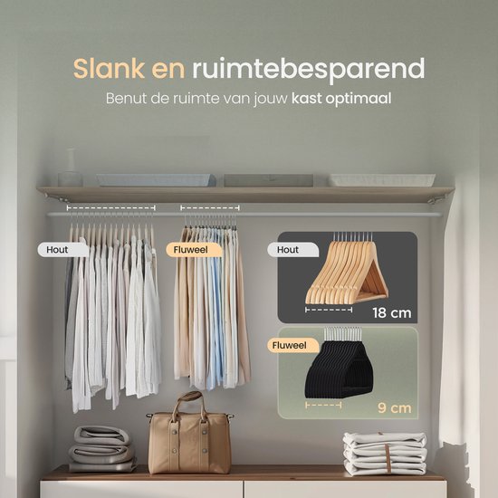 Das schlanke Profil dieser Kleiderbügel ermöglicht es Ihnen, mehr Kleidung auf dem gleichen Raum aufzuhängen. Egal, ob Sie einen kompakten Kleiderschrank haben oder einfach nur eine bessere Organisation wünschen, mit diesen Kleiderbügeln sparen Sie Platz, ohne Kompromisse bei der Stabilität einzugehen. Die clevere Mittelstange dient als praktischer Platz für Accessoires wie Krawatten oder Schals, so dass Ihre Kleidung immer ordentlich und vollständig bleibt.