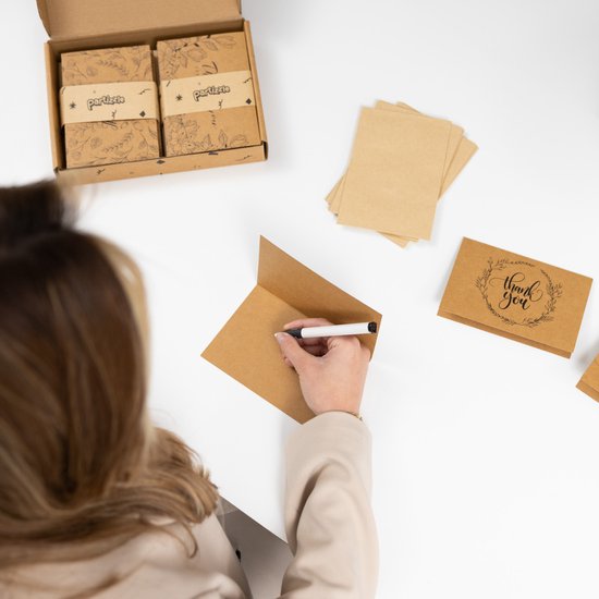 Partizzle 36x Kraft Dankeskarten Set - Dankeskarten - Grußkarten - Postkarten - Karten mit Umschlägen - 15x10 cm