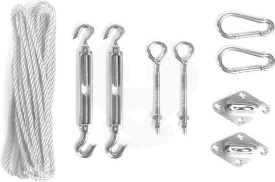 Perel Montagekit met 2 spanwartels, 2 oogbouten, 2 oogplaten, 2 karabijnhaken, nylontouw