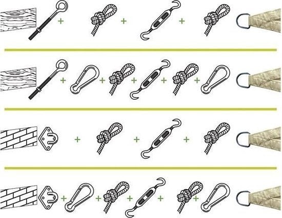Perel Montagesatz mit 2 Spannschlössern, 2 Augenschrauben, 2 Ösenplatten, 2 Karabinern, Nylonseil Mit diesem Montagesatz können Sie ein Schattentuch, eine Plane, ein Zelt, eine Hängematte, ein Vordach usw. einfach und schnell aufhängen. Das Montageset enthält 2 Spannschlösser, 2 Augenschrauben, 2 Ösenplatten, 2 Karabiner und ein Nylonseil. Mit Perel wird das Leben um einiges einfacher. Das umfangreiche Sortiment an hochwertigen Haushaltsartikeln bietet praktische Lösungen für alltägliche Probleme zu Hause, unterwegs oder bei der Arbeit. Heizen, Post empfangen, dunkle Räume beleuchten oder einfach nur Atmosphäre schaffen? Dies und vieles mehr ist mit Perel möglich. Perel ist eine Marke des belgischen Unternehmens Velleman Group. Produktspezifikationen:, Allgemeine Daten: - Verwendbar mit: allen Perel Sonnensegeln https://www.velleman.eu/products/list/?id=456194 , Enthalten: - Inhalt des Sets: 2 x: Spannwirbel mit 2 Haken (M8 x 190 mm) 2 x: Ösenschraube (Ø 8 x 130 mm) 2 x: Öse auf Platte (50 x 80 mm) 2 x: Karabiner (Ø 8 x 80 mm) 1 x: Nylonseil (Ø 6 mm x 5 m) , Grundlegende Produktinformation: - Produktfarbe: Metall - Produktgewicht: 740 g - Material: Rostfreier Stahl AISI 304 Suchbegriffe: Befestigungsmaterial Befestigungszubehör Befestigungssatz Zubehörsatz Zubehörsatz Montagesatz Seil Seilabspannung Drehwirbel Spannschloss Schraube Schraubenspanner Drahtseilspanner Seilspanner Drahtseil Seilspanner Seilkarabiner Musketonhaken Musketonhaken Karabiner Karabiner Musketon Festonhaken Ösenschraube Ösenschraube Ösenplatte Ösenplatte mit Öse Deckenhaken Sonnenschirm Schirmtuch Schirmtuch Edelstahl Edelstahlhaken Haken