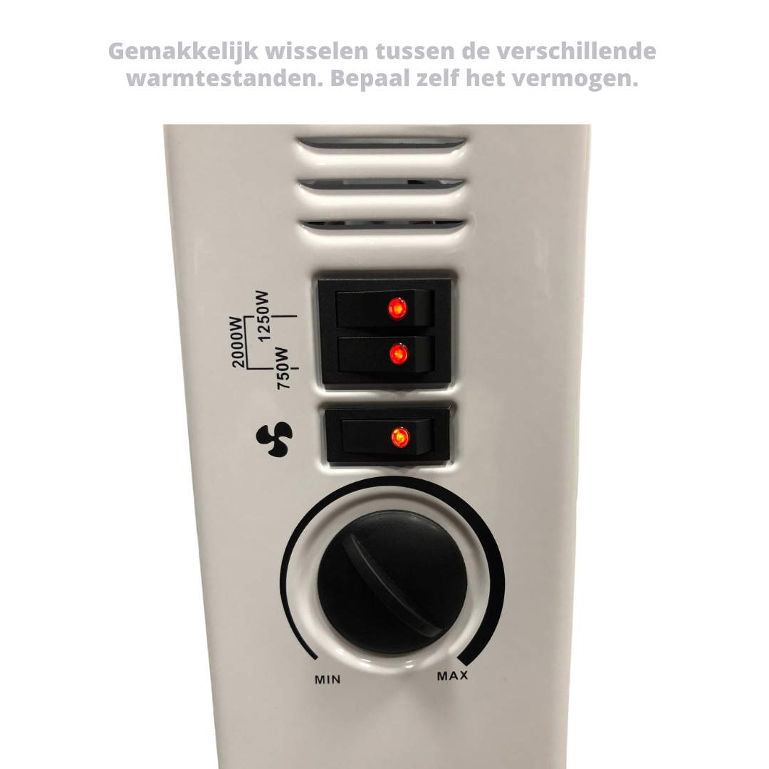 Drei Heizstufen: 750 W / 1250 W / 2000 W