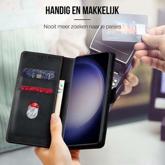 Podec Case mit Kartenhalter geeignet für Samsung Galaxy S23 Ultra Black Phone Case - Anti-Shock Bookcase Cover mit 1x Displayschutzfolie