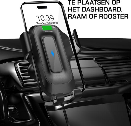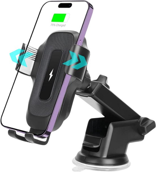 Dieser Telefonhalter hält Ihr Smartphone fest in Position im Auto. So können Sie unbesorgt freihändig navigieren. Die Handyhalterung ist mit einem kabellosen 15W-Ladegerät und einem robusten Saugnapf ausgestattet. So können Sie jede Schwelle überqueren, ohne dass sich Ihr Telefon löst oder wackelt. Diese Halterung ist für Smartphones mit einer maximalen Bildschirmgröße von 7 Zoll geeignet.