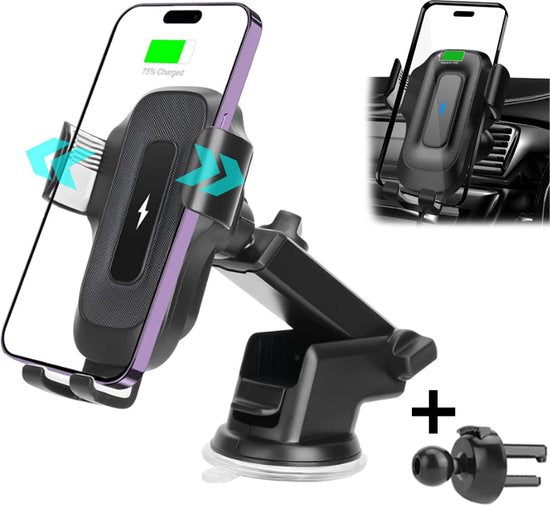 Podec Telefonhalter Auto - Mit Saugnapf - Drahtloses Ladegerät 15W - Für Lüftungsgitter