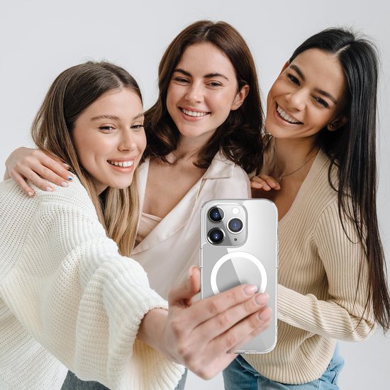 Die Hülle hat ein schlankes Design, bietet aber dennoch optimalen Schutz. Sie ist aus hochwertigem, starkem Material gefertigt, das klar bleibt. Diese magsafe Handytasche hat einen erhöhten Rand für zusätzliche Sicherheitsmaßnahmen.