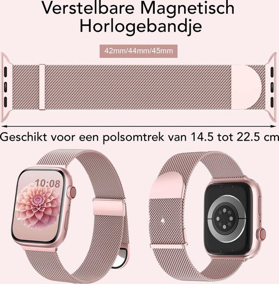 Podec Smartwatch Magnetisches Edelstahlband Rose Pink - Geeignet für Apple Watch - Band Geeignet für iWatch 42 / 44 / 45 / 49 mm - Geeignet für Serie 1/2/3/4/5/6/7/SE