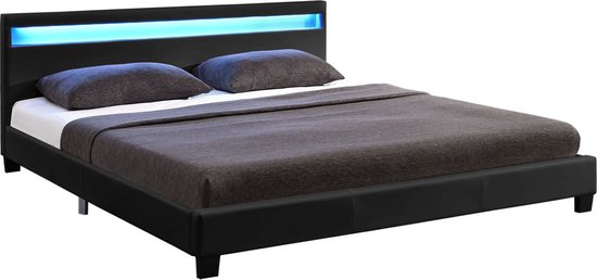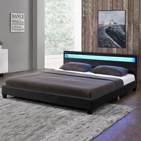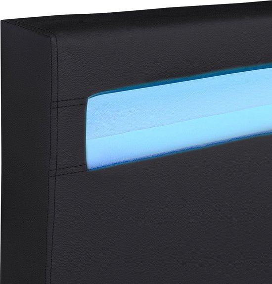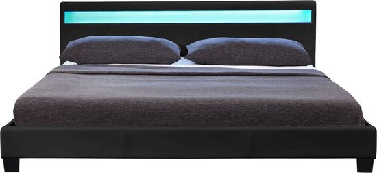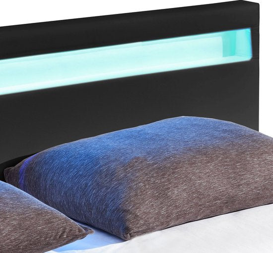 Polsterbett Paris - 140 x 200 cm - Schwarz - LED-Beleuchtung