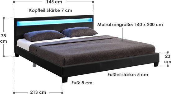 Das Polsterbett Paris (140x200 cm, in schwarz) ist eine ausgezeichnete Wahl. Dank der Kombination aus Bettrahmen und Lattenrost erleben Sie eine wunderbare und ruhige Nachtruhe. Der Lattenrost bietet die perfekte Liegefläche für eine 140x200 cm große Matratze und ist damit sowohl für Jugendliche als auch für Erwachsene geeignet. Dank seiner kompakten Abmessungen eignet sich das Bett perfekt für kleinere Schlafzimmer oder Gästezimmer. An das bequeme Kopfteil gelehnt können Sie entspannt lesen oder fernsehen. Die integrierte LED-Leiste sorgt für einen schönen Effekt auf dem schwarzen Kunstleder und verleiht dem Raum einen tollen Look.