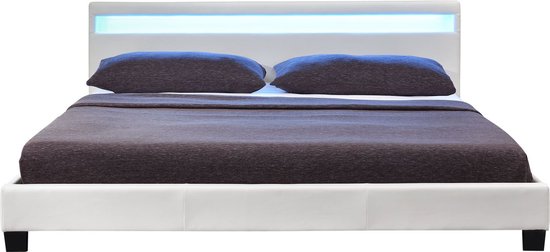 Polsterbett Paris - 140 x 200 cm - Weiß - LED-Beleuchtung