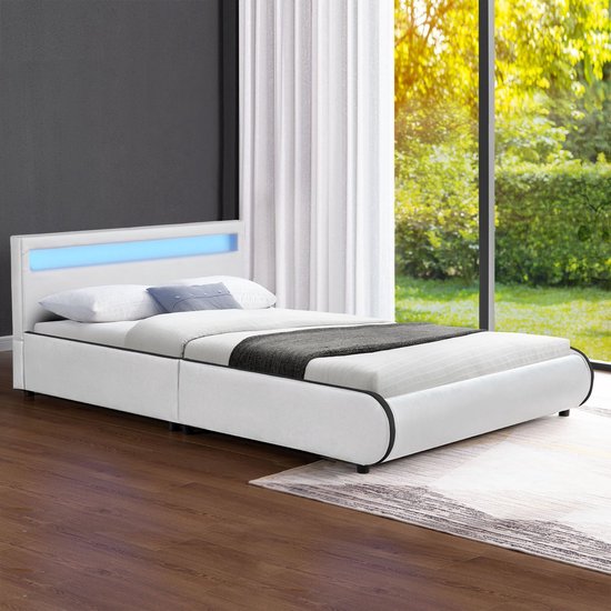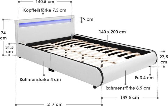 Schlafkomfort bedeutet... aufzuwachen und festzustellen, dass es keine Illusion war. Das Polsterbett Sevilla (140x200 cm, weiß) bietet einen noch nie dagewesenen Komfort und eine robuste Konstruktion. Der robuste Lattenrost bietet die perfekte Grundlage für einen gesunden und erholsamen Schlaf. Mit seiner gepolsterten Rückenlehne ist er auch ideal zum Entspannen mit einem Buch oder beim Fernsehen. Außerdem ist Platz für eine elegante LED-Beleuchtung, die in verschiedenen Farben für eine stimmungsvolle Atmosphäre in Ihrem Schlafzimmer sorgt. Sein modernes Design und sein stilvoller Look sprechen Jugendliche und Erwachsene gleichermaßen an. Durch seine mittlere Größe eignet es sich auch perfekt als Doppelbett in kleineren Schlafzimmern oder Gästezimmern.