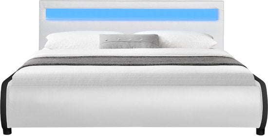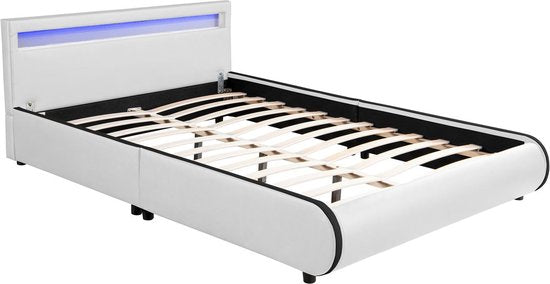 Polsterbett Sevilla - 140 x 200 cm - Weiß - LED-Beleuchtung
