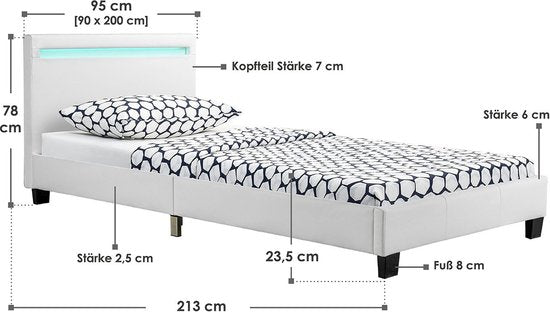 Polsterbett Verona - 90 x 200 cm - Weiß - LED-Beleuchtung