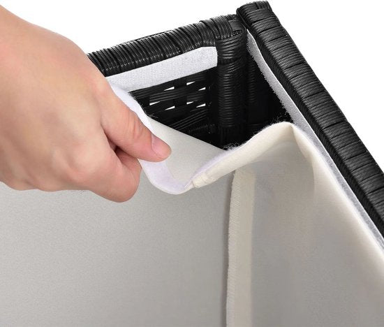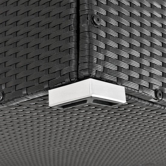 Material der Aufbewahrungsbox: Polyrattan und Stahl