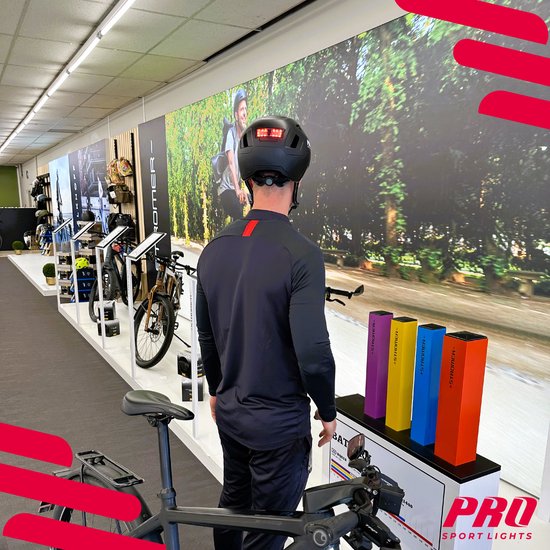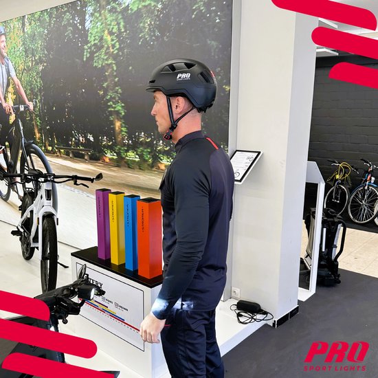 ge - Fahrradhelm-Norm) erfüllen, mit der zusätzlichen Anforderung, dass der Helm Schutz für die Schläfen und den Hinterkopf bietet. Ein nach NTA8776 zugelassener Helm erfüllt nämlich immer auch die Richtlinien der EN1078. (Dies wird auch in Belgien zur Pflicht) Dieses Speed Pedelec von Pro Sport Lights ist mit einem weißen Frontlicht und einem roten Rücklicht ausgestattet, das über USB-C aufgeladen werden kann, genau wie Ihr Smartphone.