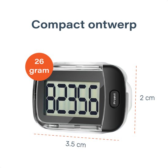 Mit dem Stap Counter in der Tasche oder an der Hose befestigt, erhalten Sie sofortigen Einblick in Ihre tägliche Bewegung. Dies unterstützt Sie bei der Festlegung von Bewegungszielen und hilft Ihnen, Ihren Lebensstil nach Bedarf anzupassen. Er ist die ideale Motivation, um gesund und aktiv zu bleiben!