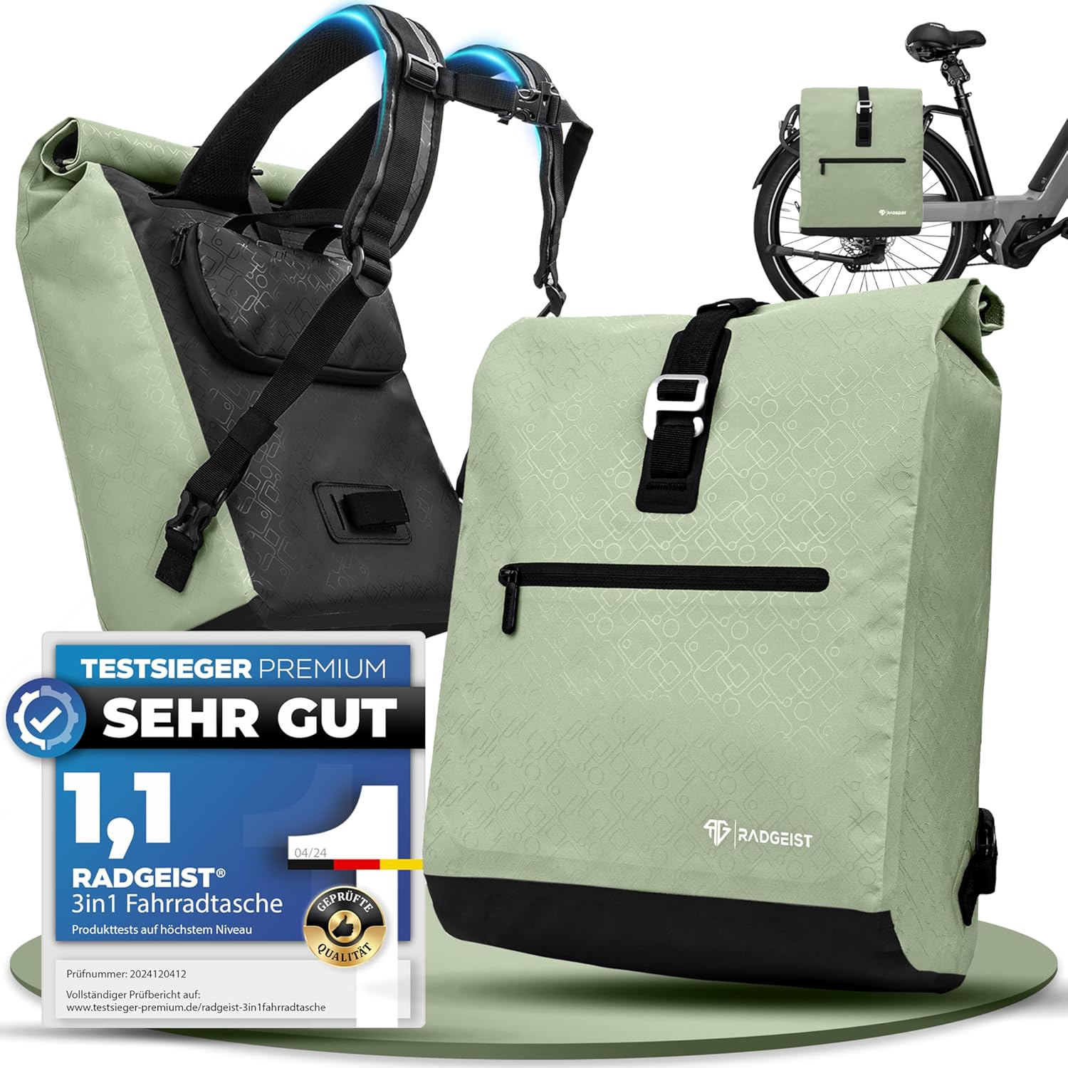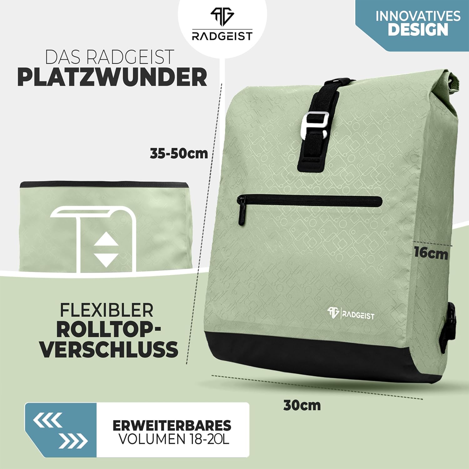RADGEIST Fahrradtasche für Gepäckträger I Fahrradtasche & Rucksack I Fahrradtasche für Frauen & Männer I Umhängetasche & Fahrradtasche für Fahrrad 20L Mint