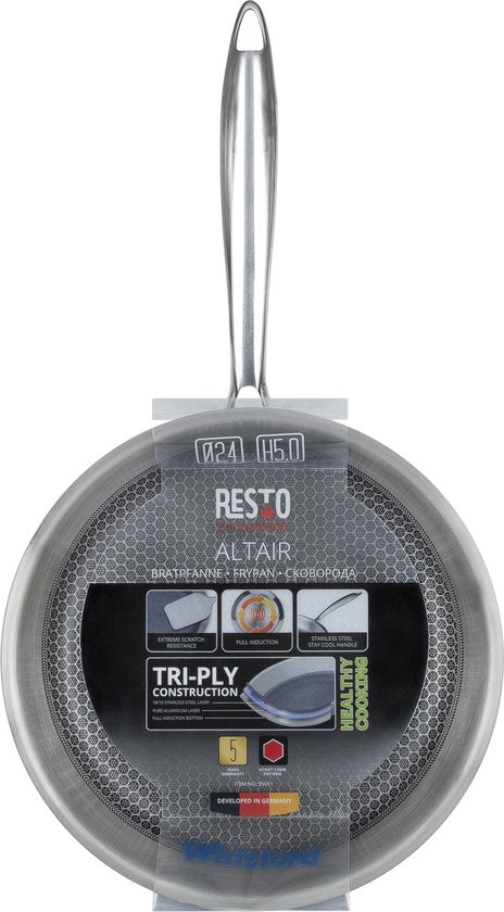 Resto Altair Bratpfanne - Ø24 cm - Dreischicht-Edelstahl - Wabenförmige Antihaftbeschichtung - Induktion - Backofenfest
