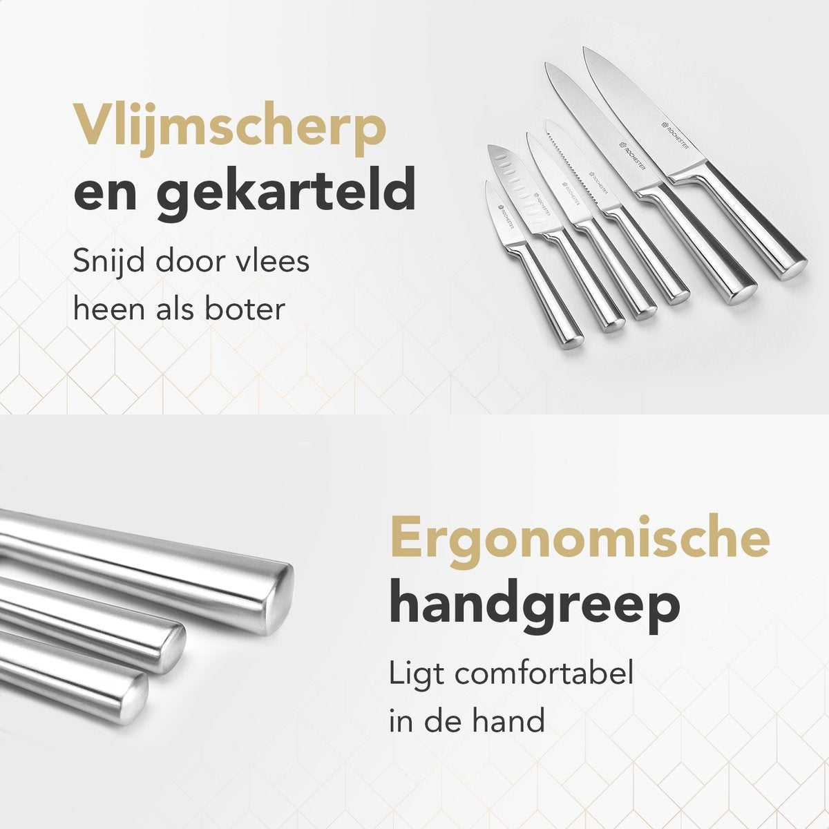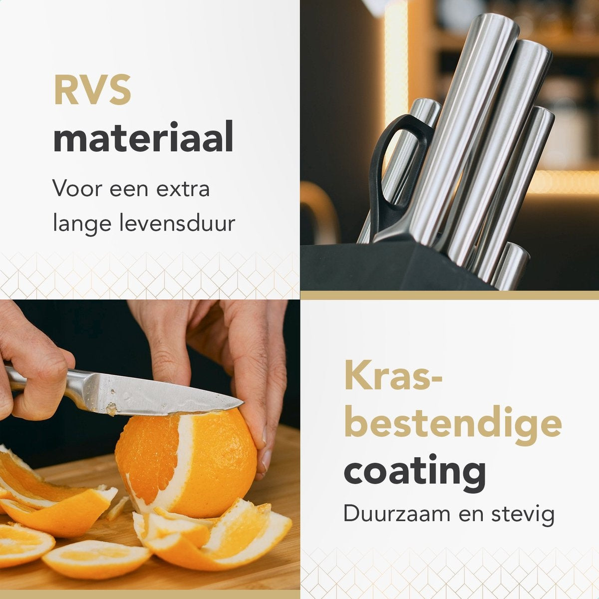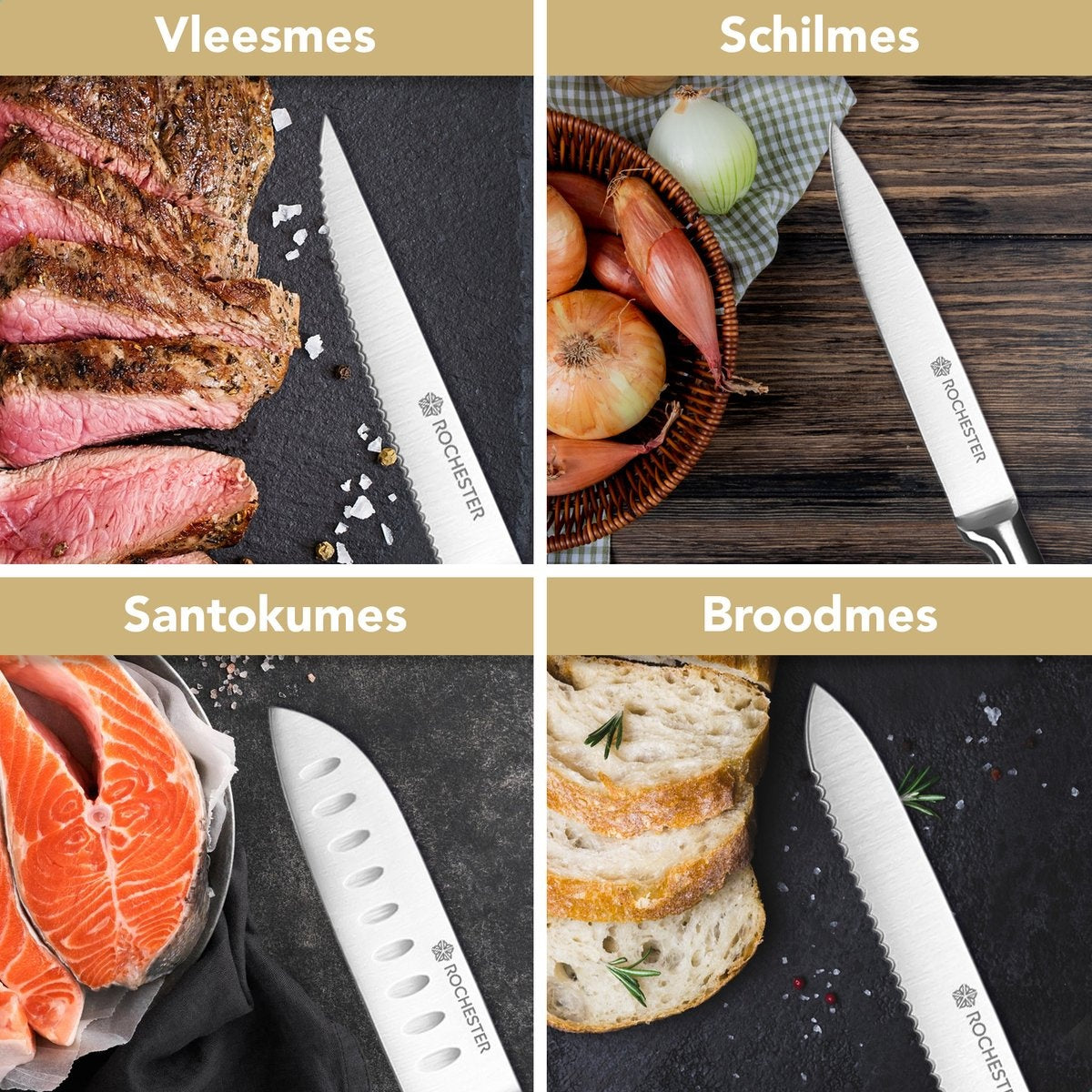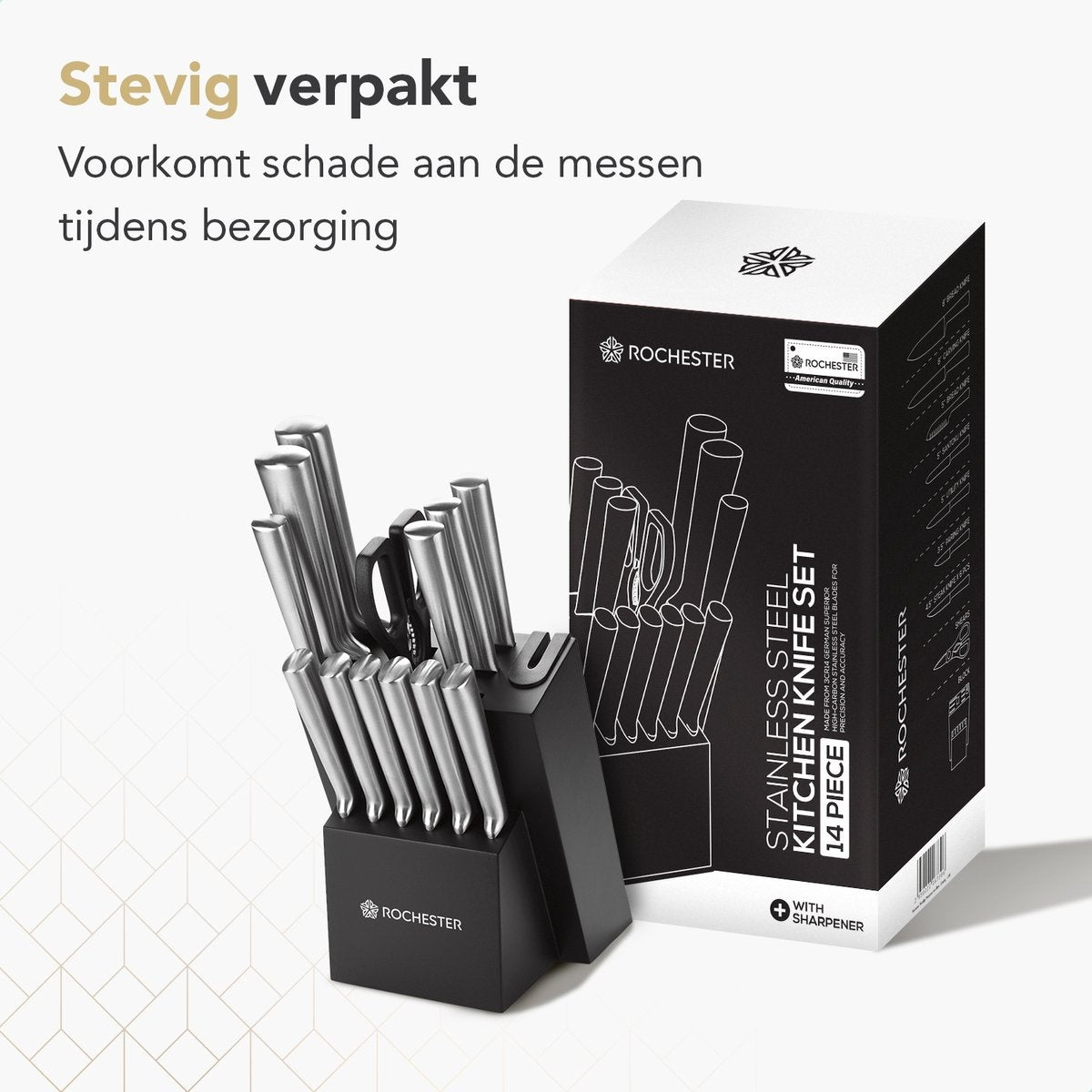 Rochester 14-teiliges Messerset mit Block und Messerschärfer - Küchenmesser mit Messerblock - Rostfreier Stahl - Kratzfeste Beschichtung
