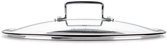Der Deckel besteht aus gehärtetem Glas mit einem Griff aus rostfreiem Stahl, der ihn widerstandsfähig gegen Abnutzung, Kratzer und die höchsten Temperaturen im Ofen macht.
