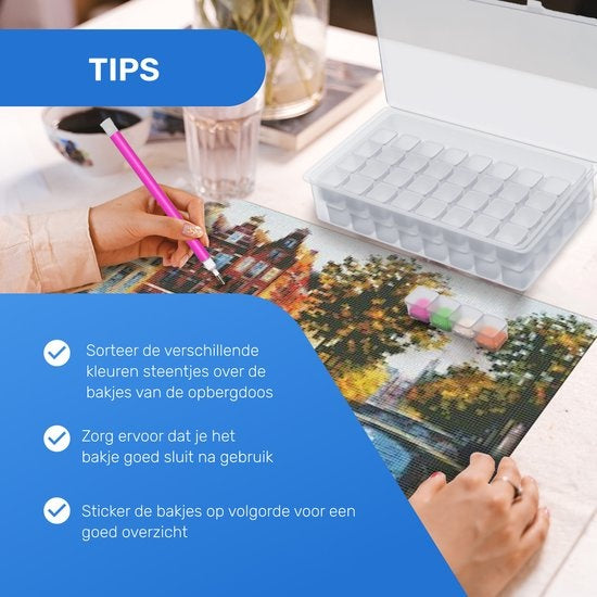 Ein schönes Geschenk zum Erhalten und Verschenken Dieses umfangreiche Set mit Aufbewahrungsbox und Sortierbox ist ein ideales Geschenk. Perfekt für Familie oder Freunde, die genauso verrückt nach Diamond Paintings sind wie du. Oder vielleicht kennst du jemanden, der mit diesem Trend noch völlig unbekannt ist. Es ist Zeit, ihn oder sie in die Welt der Diamond Paintings einzuführen. Und wenn du dann anfängst, machst du das richtig gut mit diesem umfangreichen Set mit Zubehör für deine Bequemlichkeit. Vielleicht hängt bald so ein schönes Gemälde bei dir an der Wand. Oder du machst jemand anderen glücklich mit deiner Kreation?