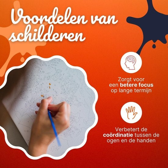 Malen nach Zahlen ist das neue Trendhobby in den Niederlanden und Belgien. Die Leinwand enthält nummerierte Kästchen, die zusammen das Gemälde bilden. Mit der beiliegenden Acrylfarbe und den verschiedenen Pinseln können Sie nun selbst ein schönes Kunstwerk erschaffen.