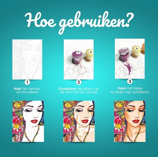 Malen nach Zahlen ist der neue Trend-Hobby in den Niederlanden und Belgien. Die Leinwand enthält nummerierte Felder, die zusammen das Gemälde bilden. Mit der mitgelieferten Acrylfarbe und den verschiedenen Pinseln können Sie jetzt Ihr eigenes wunderschönes Kunstwerk erstellen.