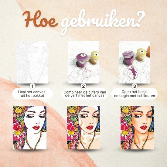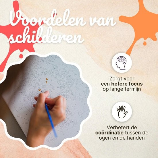 Malen nach Zahlen ist der neue Trend-Hobby in den Niederlanden und Belgien. Die Leinwand enthält nummerierte Felder, die gemeinsam das Gemälde formen. Mit der mitgelieferten Acrylfarbe und den verschiedenen Pinseln kreieren Sie nun Ihr eigenes wunderschönes Kunstwerk.
