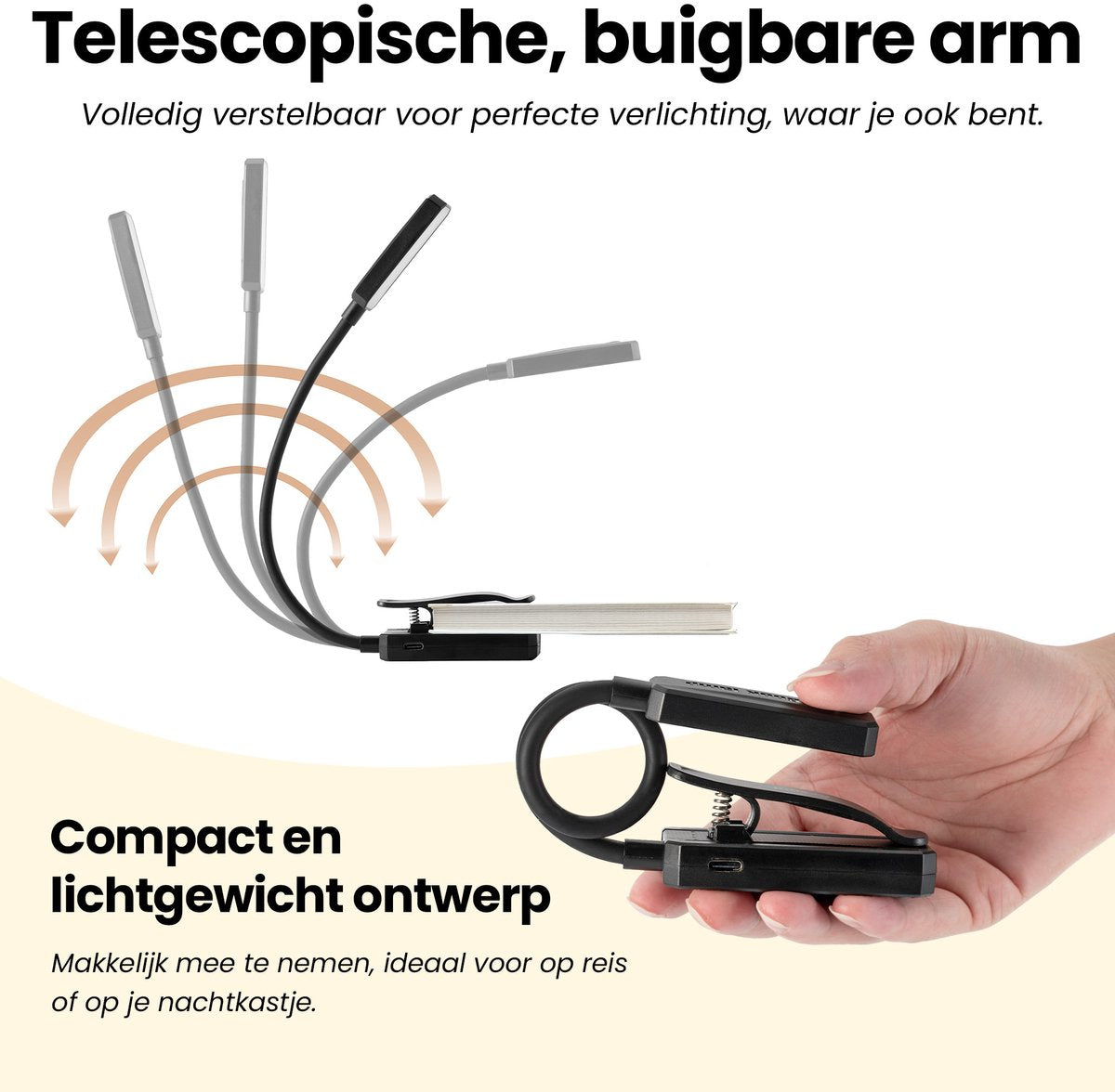 Klemmen Sie die Lampe fest an Bücher, Regale oder Bettköpfe für stabile Beleuchtung beim Lesen.