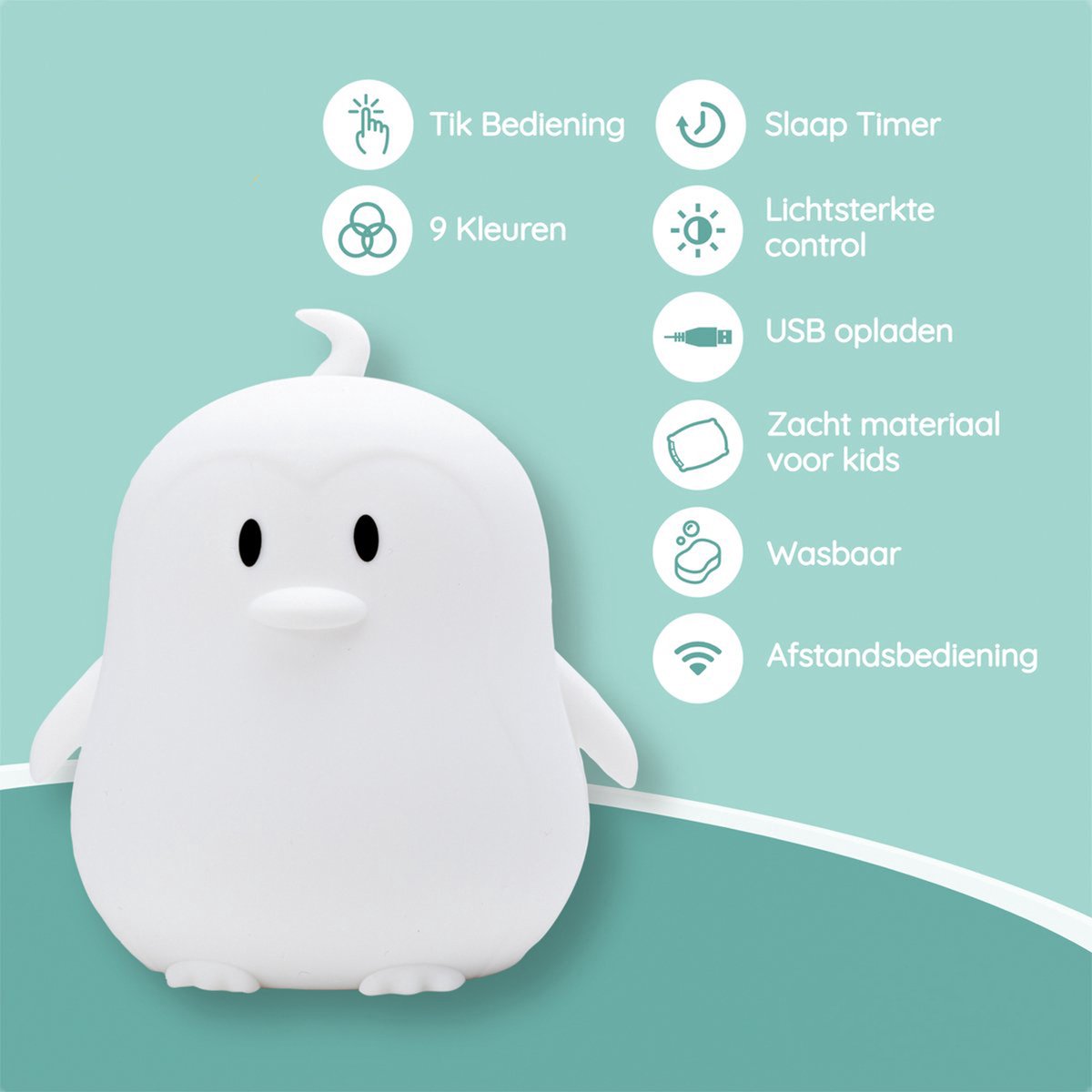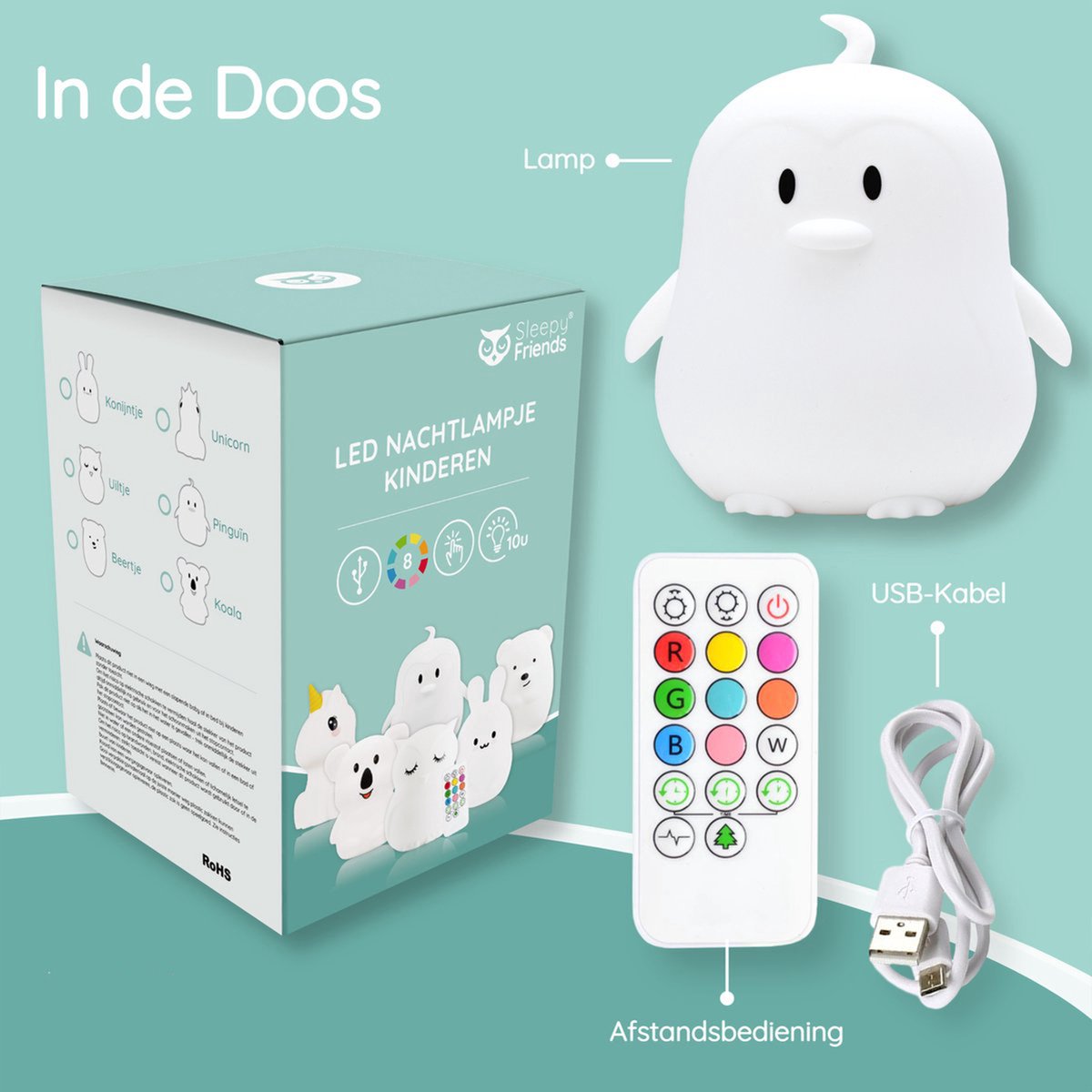 Sleepy Friends Pinguin-Nachtlicht für Kinder - 8 Farben LED - dimmbar & Touch - USB aufladbar - 95.2 x 97.4 x 100 mm - weiches Silikon