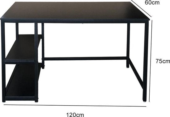Ein schöner und stabiler Schreibtisch im Industriestil, gefertigt mit einem schwarzen Metallgestell und einer schwarzen Tischplatte. Er verfügt über zwei zusätzliche Ablageflächen, auf denen Sie Ihren Computer, Drucker, Ordner oder anderes Material, das Sie schnell erreichen müssen, unterbringen können. Dieser Arbeits- oder Computertisch ist ideal für jeden Raum in Ihrer Wohnung, in Ihrem Büro oder in Ihrem Arbeitszimmer und wird mit Sicherheit die Aufmerksamkeit auf sich ziehen. Er ist sehr robust und stabil, mit einer Arbeitsfläche von 120 cm Breite und 60 cm Tiefe. Die Gesamtmaße des Schreibtisches sind 120 cm breit, 60 cm tief und 75 cm hoch. Im Lieferumfang sind eine Anleitung und alle notwendigen Montagematerialien enthalten.